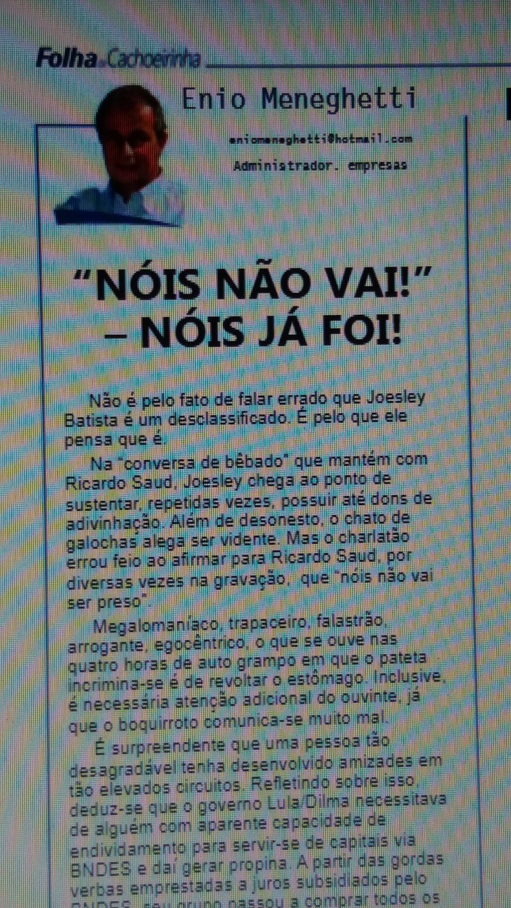 Não é pelo fato de falar errado que Joesley Batista é um desclassificado. É pelo que ele pensa que é.