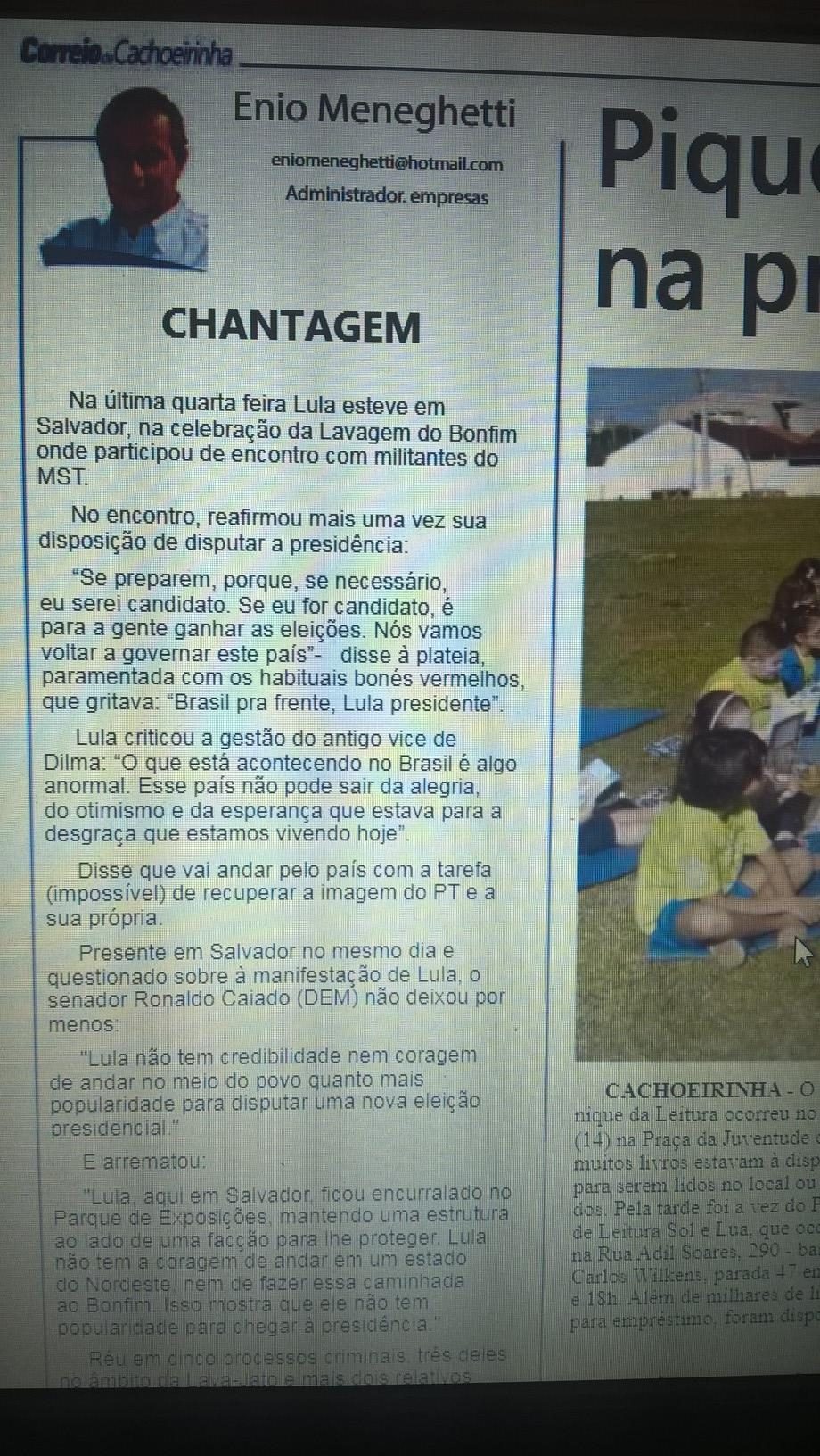 Artigo publicado no jornal Correio de Cachoeirinha desta terça feira, 17.01.2017.