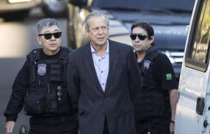 epa05315575 (FILE) A file photo dated 31 August 2015 shows Brazilian former Minister Jose Dirceu, former Chief of Staff during the first Presidency of Luiz Inacio Lula da Silva (2003-2006), being escorted to Federal Police headquarters in Curitiba, Brazil, 31 August 2015. A Brazilian federal judge sentenced Jose Dirceu, a former presidential chief of staff, to 23 years and three months in prison for his role in a massive corruption scheme centered on state-controlled oil company Petrobras. Judge Sergio Moro, who is spearheading the bribes-for-inflated contracts probe, found Dirceu guilty of accepting and paying bribes and money laundering. Dirceu was former President Luiz Inacio Lula da Silva’s chief of staff from 2003 to 2005 before being forced to step down over a separate congressional vote-buying scheme, dubbed the ‘Mensalao’ scandal. In 2012, Brazil’s Supreme Court sentenced him to nearly 11 years in prison in that case. EPA/HEDESON ALVES