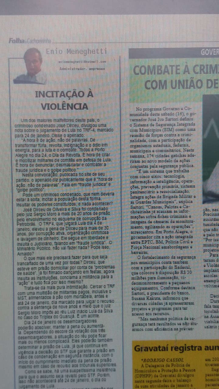 Com tudo isto em jogo, se compreende o interesse do criminoso José Dirceu em tentar tumultuar as cercanias do TRF. Sim, porque se concorrer e se, por uma desgraça, Lula for eleito, ele não se importará em destruir o país para livrar a si e seus companheiros.