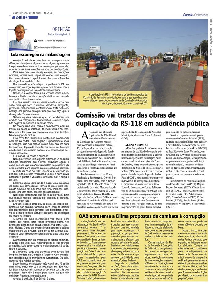 Diariamente ouvimos o noticiário sobre corrupção e ao final aquela notinha do Instituto dele dizendo: “Lula não está sendo investigado por nada”. E de quebra, ele vem ameaçando processar a quem diga o que não lhe agrade.