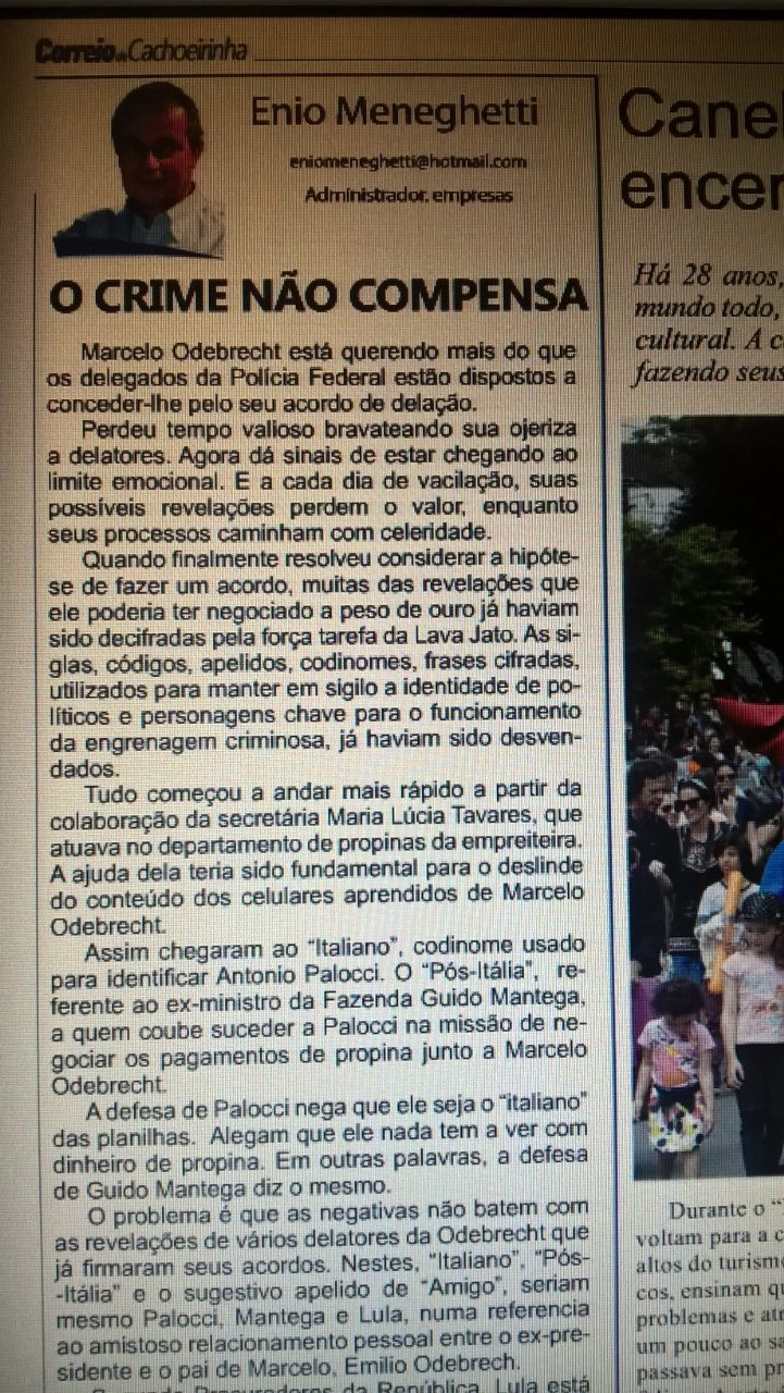 Independentemente disso, já condenado a 12 anos e 1 mês de cadeia no caso do tríplex, Lula deverá sofrer uma segunda sentença antes da eleição de outubro, sobre a propriedade do sítio em Atibaia. Até lá, a munição fornecida por Palocci movimentará muito o noticiário policial. Muita gente perdeu o sono com a notícia.