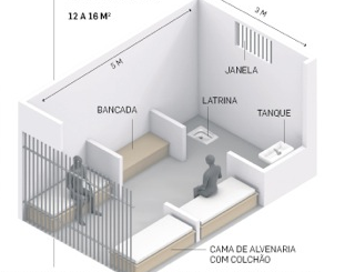 “Nas celas do presídio não há chuveiro individual, ou seja, o banho é coletivo. E o vaso sanitário é o chamado ‘boi’, um buraco no chão – o preso tem de ficar de cócoras, sentado sobre os calcanhares.”