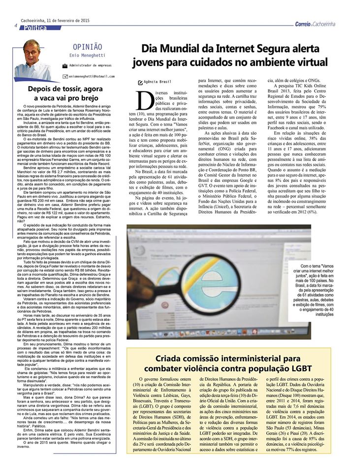 Com relação ao noticiário de hoje, faço os seguintes esclarecimentos: