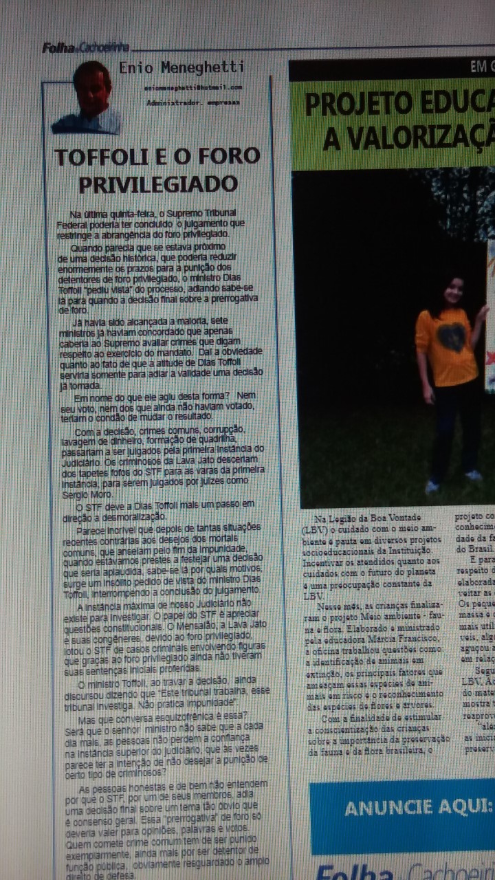 Pelo link acima, acesse a publicação original e também a resposta do ex ministro.