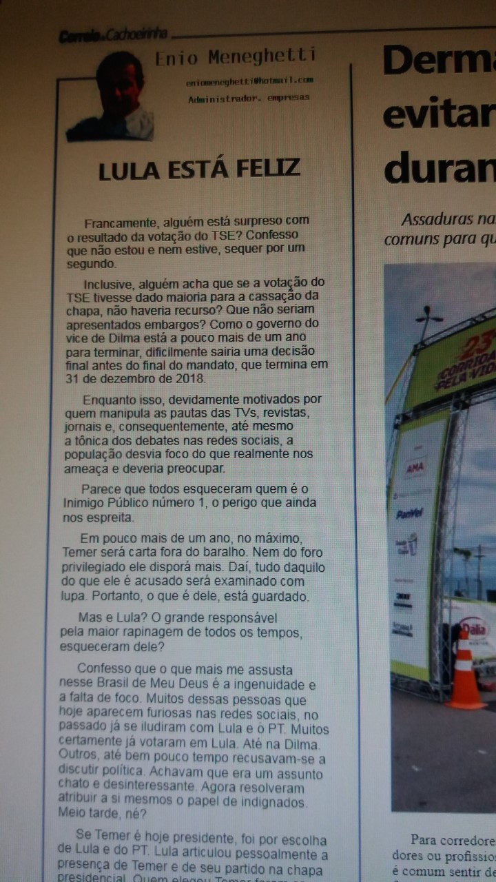 O fato é que, se estiver solto em outubro de 2018, o inimigo público número um pode ser eleito. Ele não está morto eleitoralmente. Longe disso. Não o subestimem.