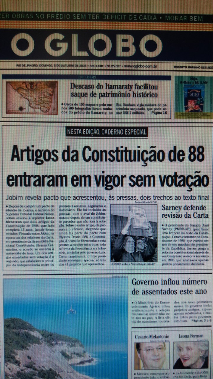 LEMBRO BEM que Nelson Jobim admitiu ter enxertado artigos no texto da atual Constituição Federal, sem que estes jamais tenham sido votados;