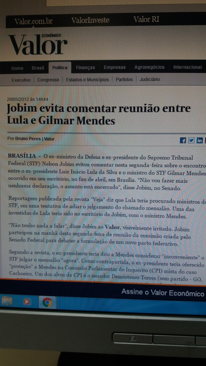 detalhes em: http://www.valor.com.br/politica/2679620/jobim-evita-comentar-reuniao-entre-lula-e-gilmar-mendes